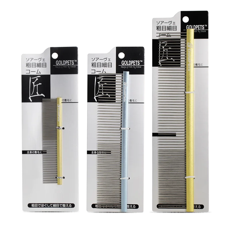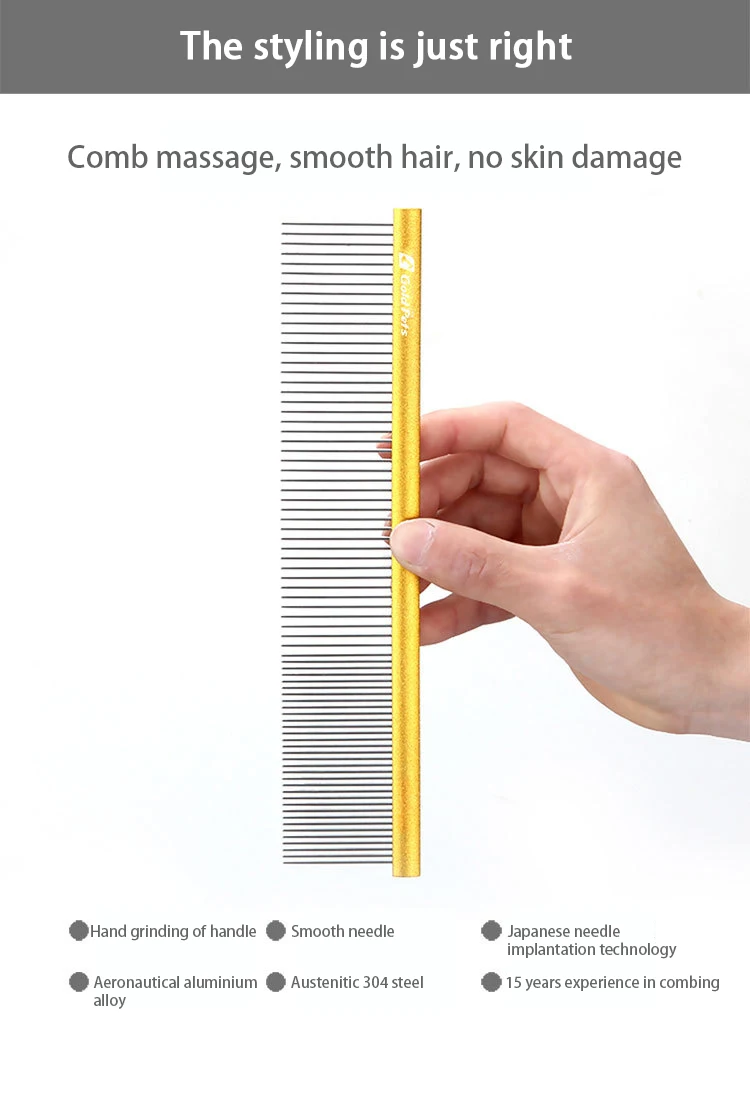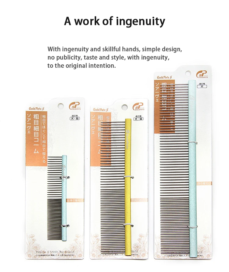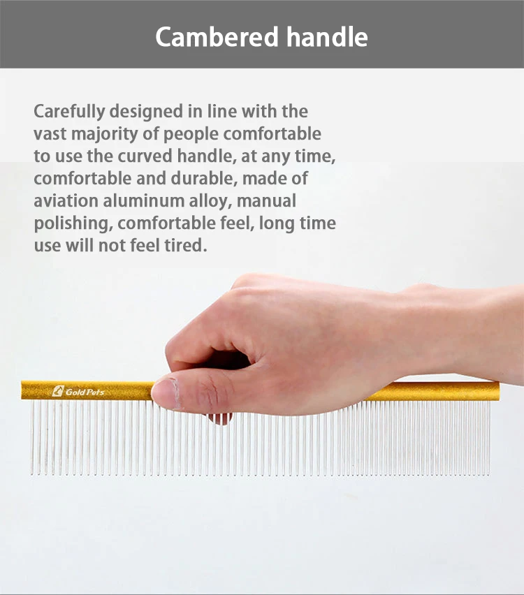 【Cambered Handle For More Comfort and Easier Hold On.】>>Our grooming comb for dogs and cats two ends of the handle are polished without sharp edges.This dog grooming comb It's safer and more comfortable to use for groomer.Handle surface through matte process flow, anti - slip.
