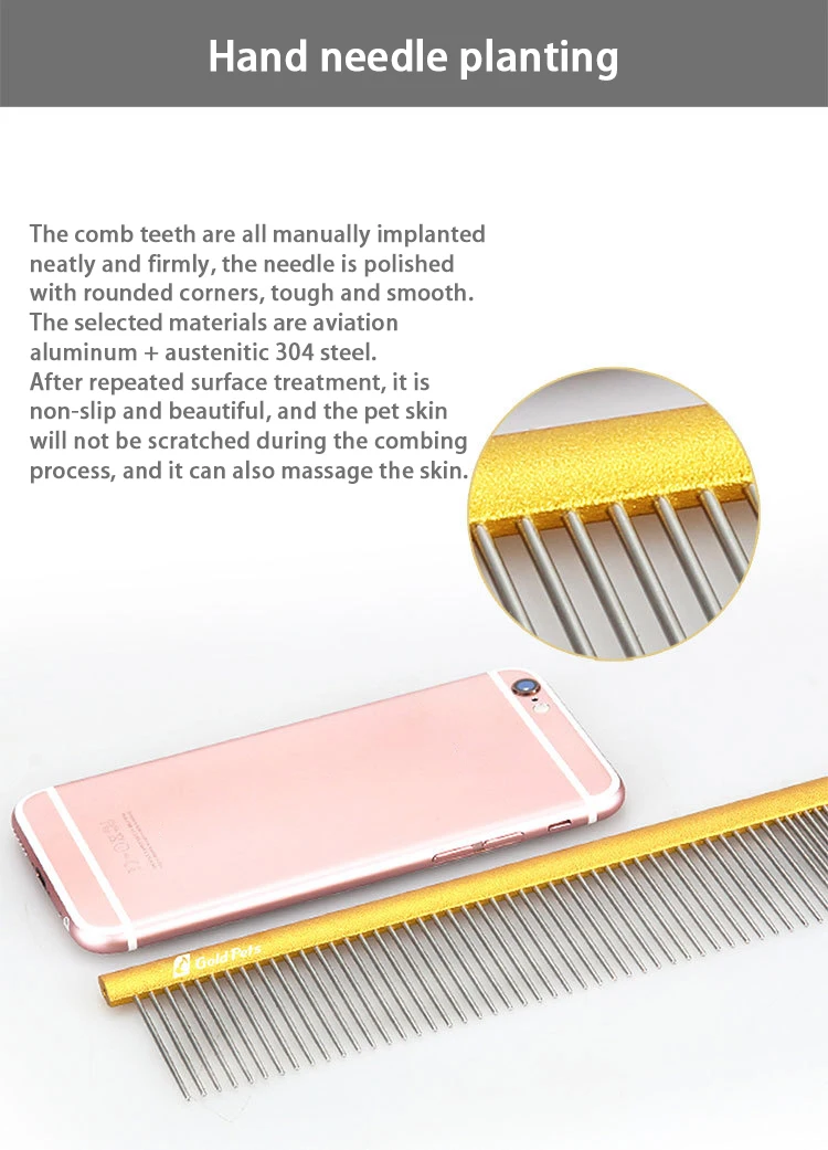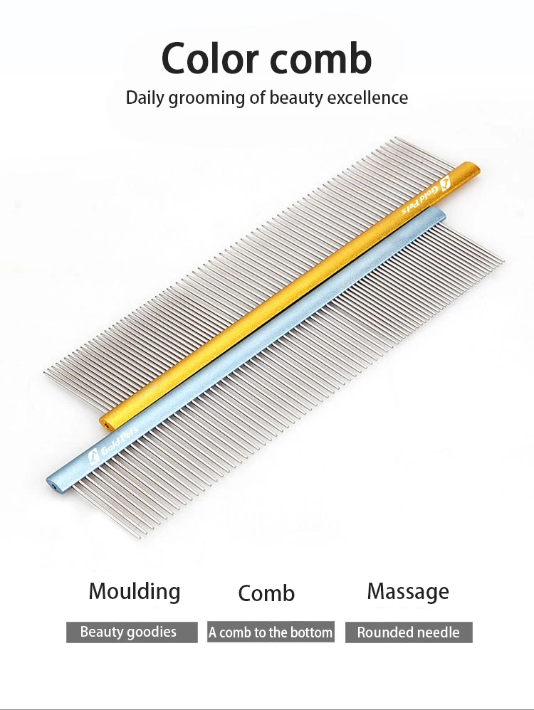 【No Rust&Corrosion,No Lose Colour.】>>The greyhound pets grooming comb handle surface is polished, dog comb surface is oxidized and painted, and treated with anti-rust. There are altogether four technological processes,make the color distribution more uniform and bright.