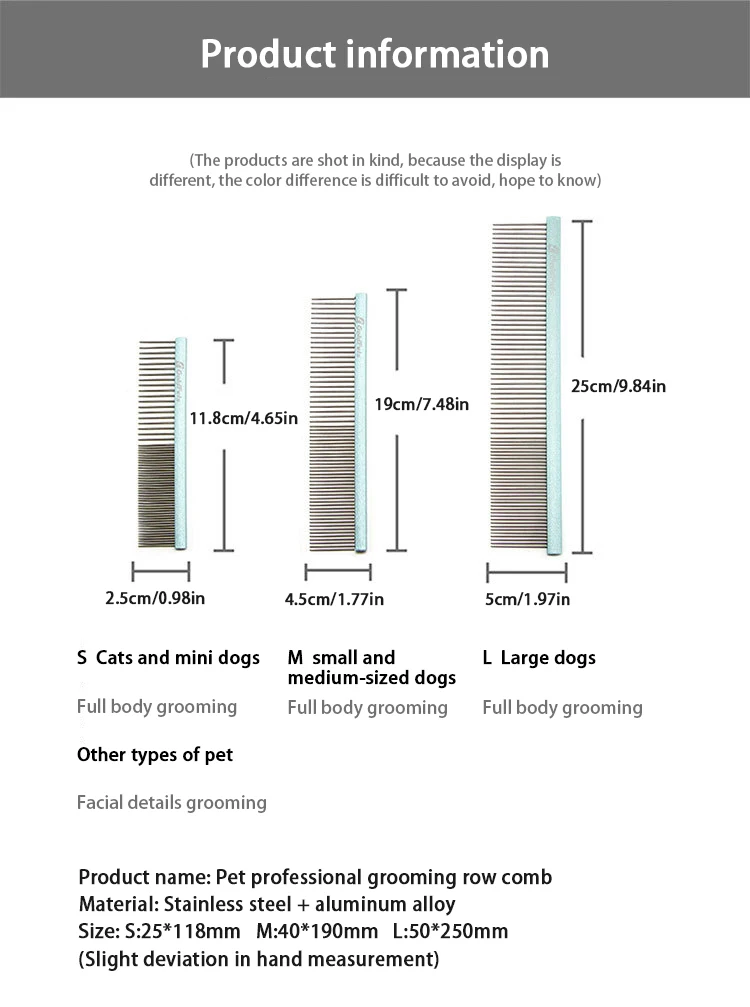 【Suitable For Long-Haired Dogs and Cats.】>> Our dog comb for long haired dogs and cats will works well.DOG: Border herder, Samoyed, Sioux, Golden Retriever, Ancient herder, Chow Chow, Alaska, Shetty, Great pyrenees, Papillon, Megalodon, Afghan hound, Maltese. CAT:Muppet, Persian, Norwegian Wood, Maine Coon, Berman, Turkish Van, Paris Cat.it's useful steel metal comb for dogs and cats.